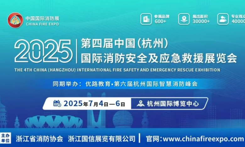 From July 4 to 6, 2025, the 4th China (Hangzhou) International Fire Safety and Emergency Rescue Expo (CHINA FIRE EXPO 2025) will take place at the Hangzhou International Expo Center.